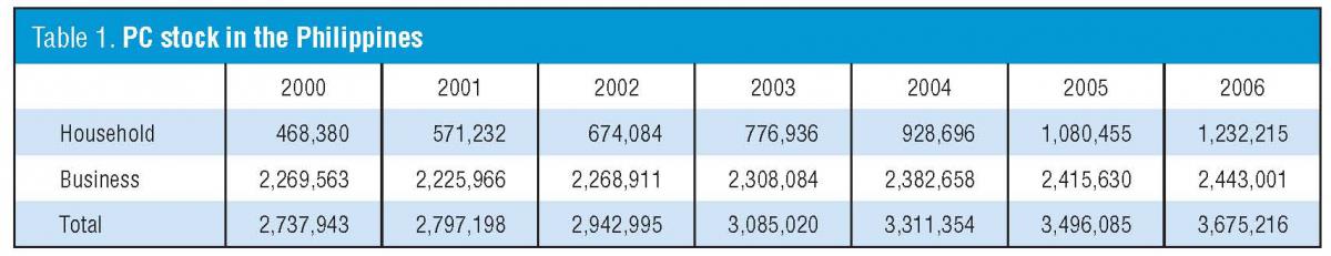 ICT use: PC and mobile telephony use in the Philippines has increased tremendously. From just 34,000 mobile subscriptions in 1991, mobile subscribers have reached almost 79 million in 2010; almost four in five Filipinos own a mobile phone. Computer and internet access has also been steadily growing. Household PC ownership was only pegged at 5.9% in 2006, 4 but is steadily rising. Based on available census data and new statistical analysis, the increasing number of PCs in the country (both household and business) has also been estimated in Table 1. 5