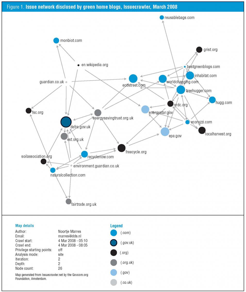 Figure 1. Issue network disclosed by green home blogs, Issuecrawler, March 2008